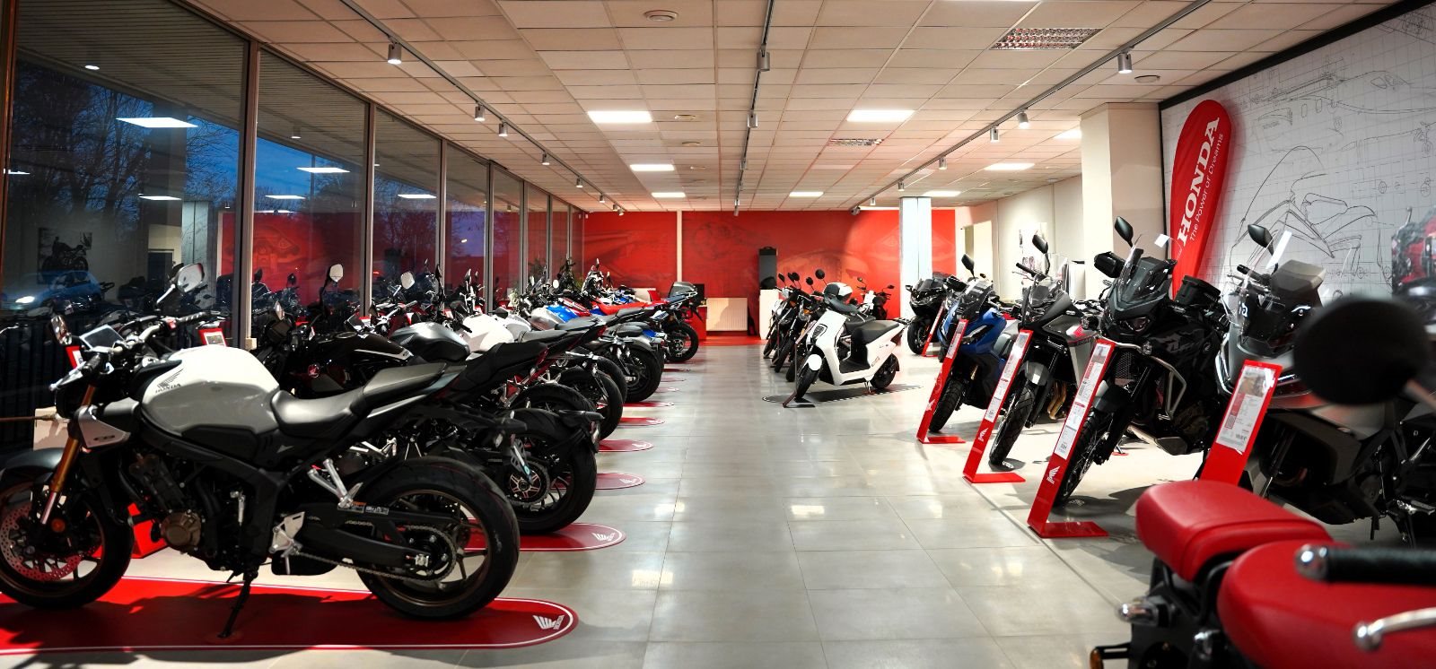Auf ca. 1.500 qm Ausstellungsraum mit Fachwerkstatt bieten wir ihnen die komplette Modellpalette von Triumph und Honda Neufahrzeugen, sowie immer eine Auswahl an gebrauchten Fahrzeugen aller Marken. Des weiteren stellen wir einen Großteil des Original Triumph und Honda Bekleidungssortiment aus und bieten diverse Accessoires für viele Modelle in der Ausstellung.