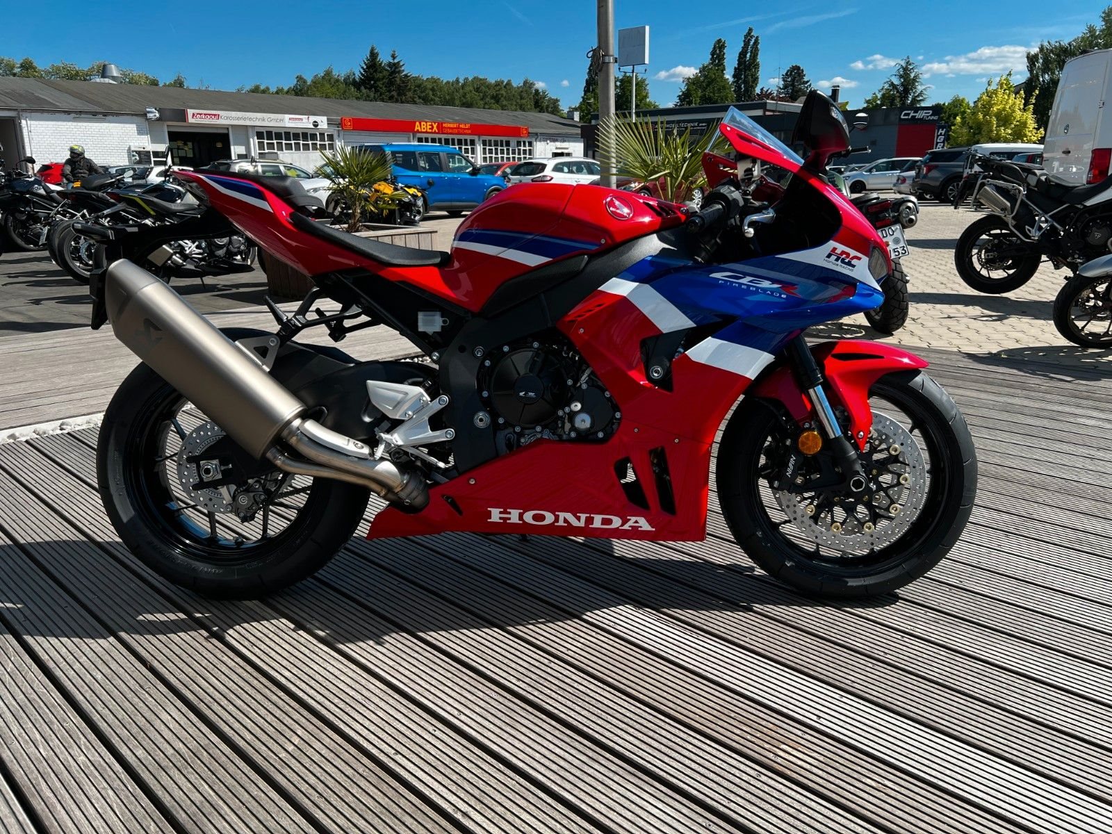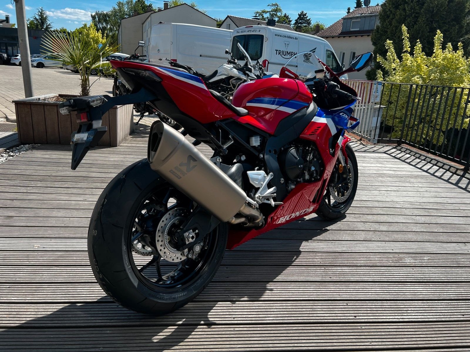 Auf ca. 1.500 qm Ausstellungsraum mit Fachwerkstatt bieten wir ihnen die komplette Modellpalette von Triumph und Honda Neufahrzeugen, sowie immer eine Auswahl an gebrauchten Fahrzeugen aller Marken. Desweiteren stellen wir einen Großteil des Original Triumph und Honda Bekleidungssortiment aus und bieten diverse Accessories für viele Modelle in der Ausstellung.