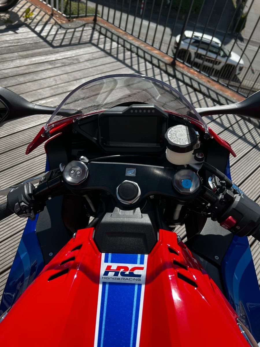 Das macht für uns die Faszination des Rennsports aus. Wir sind seit jeher dem Rennsport verbunden und durch die Feedbacks von HRC und unseren Fahrern haben wir die neue CBR1000RR-R Fireblade hervorgebracht. Sie zeichnet sich durch höhere Leistung im mittleren Drehzahlbereich aus, die durch Verbesserungen am Ansaugsystem und am Zylinderkopf erreicht wurde, sowie durch die überarbeitete Übersetzung, die für einen unglaublichen Zug aus der Kurve heraus sorgt. Bei der Spitzenleistung bleibt alles beim Alten. Das Ansprechverhalten wurde durch die zweimotorige Throttle By Wire-Steuerung noch weiter verbessert, sodass dank der extrem präzisen Gasannahme jede Umdrehung zählt. Gewichtseinsparungen und eine genau ausbalancierte Steifigkeit des Chassis verbessern das Handling und den Grip. Die neu gestalteten Verkleidungswinglets sorgen für mehr Abtrieb bei geringerem Lenkwiderstand. Und ganz gleich, ob du auf einer kurvenreichen Straße unterwegs bist oder Runde für Runde den optimalen Scheitelpunkt anpeilst, die neue Fahrposition bietet dir Freiheit und gleichzeitig völlige Kontrolle. Für Rennen geeignet? Das ist eine reinrassige Rennmaschine.