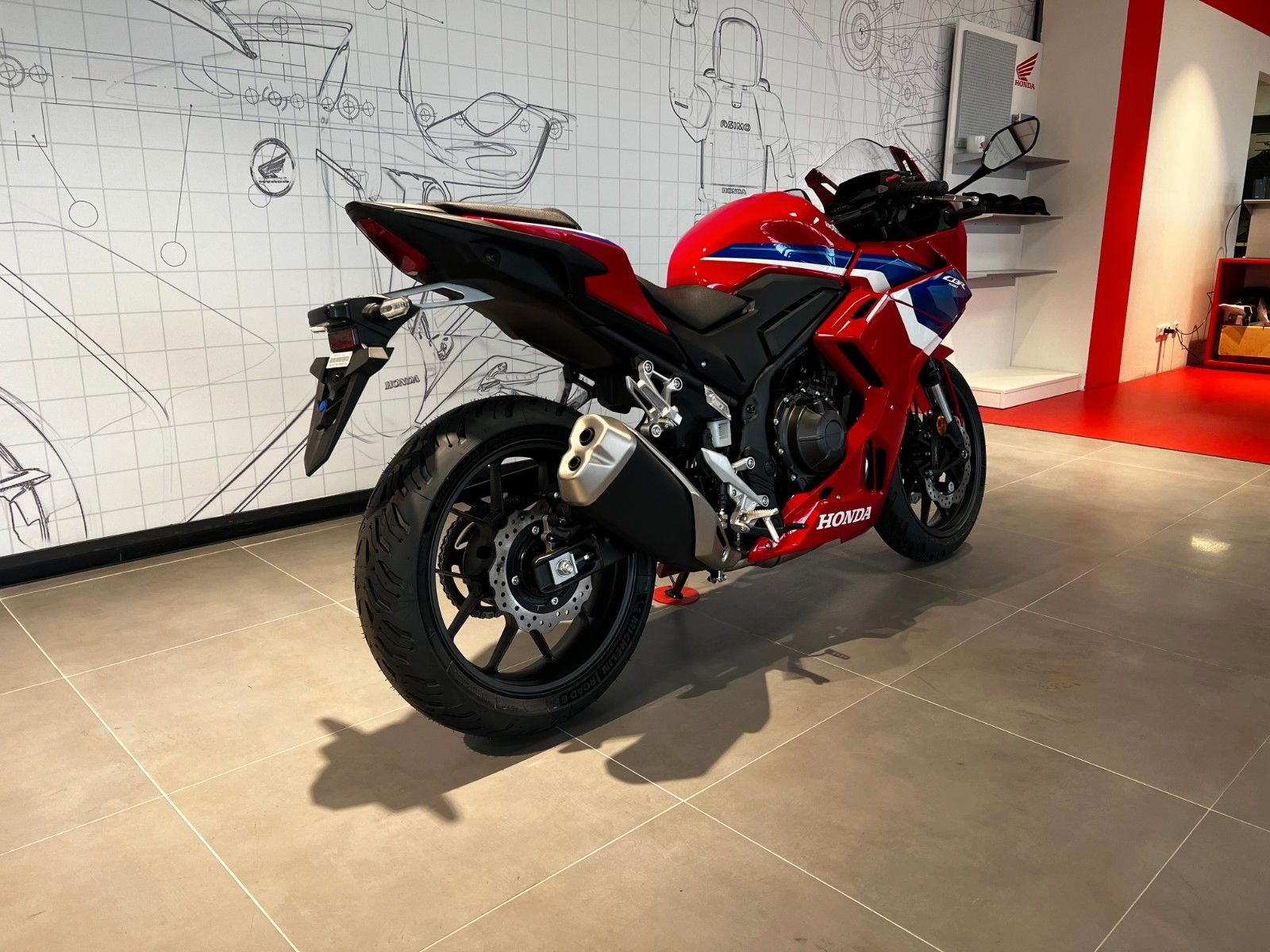 CBR. Drei ganz besondere Buchstaben mit einer denkwürdigen Geschichte. Das Design mit der neuen Lackierung und den Grafiken direkt aus der Boxengasse orientiert sich deutlich an der Fireblade - die CBR500R ist mit den gleichen aerodynamischen Winglets ausgestattet, die für Stabilität bei der Kurveneinfahrt und überragende Agilität bei hohen Geschwindigkeiten sorgen. Neuer Maßstab in Sachen Rennsportdesign - von den Scheinwerfern mit ihrem neuen aggressiven Look und dem breiten, hellen Lichtkegel, der bei Nacht für Sicherheit in Kurven sorgt, über die aerodynamische Verkleidung bis hin zur schnittigen Sitzbank.