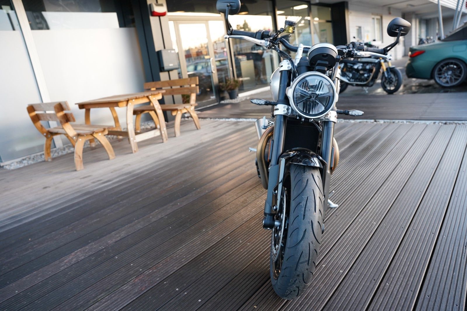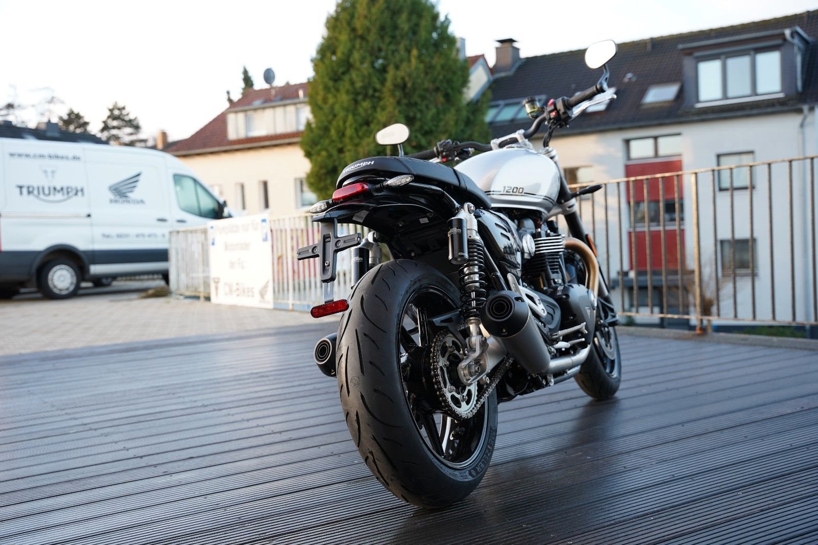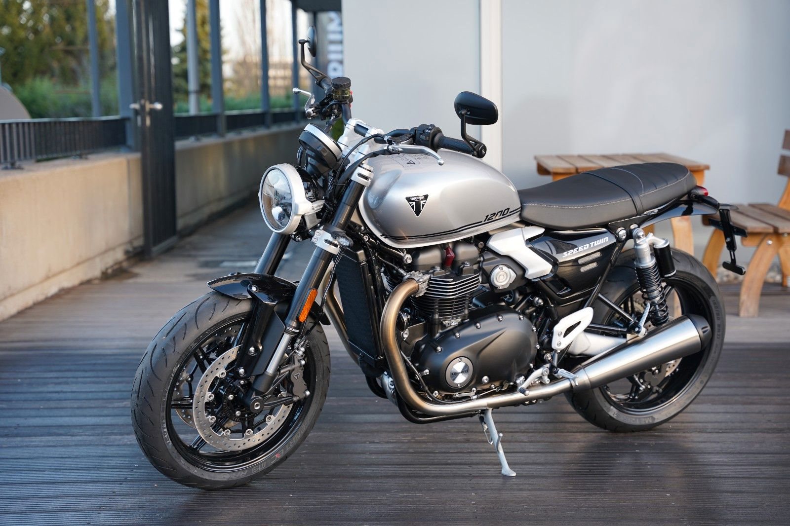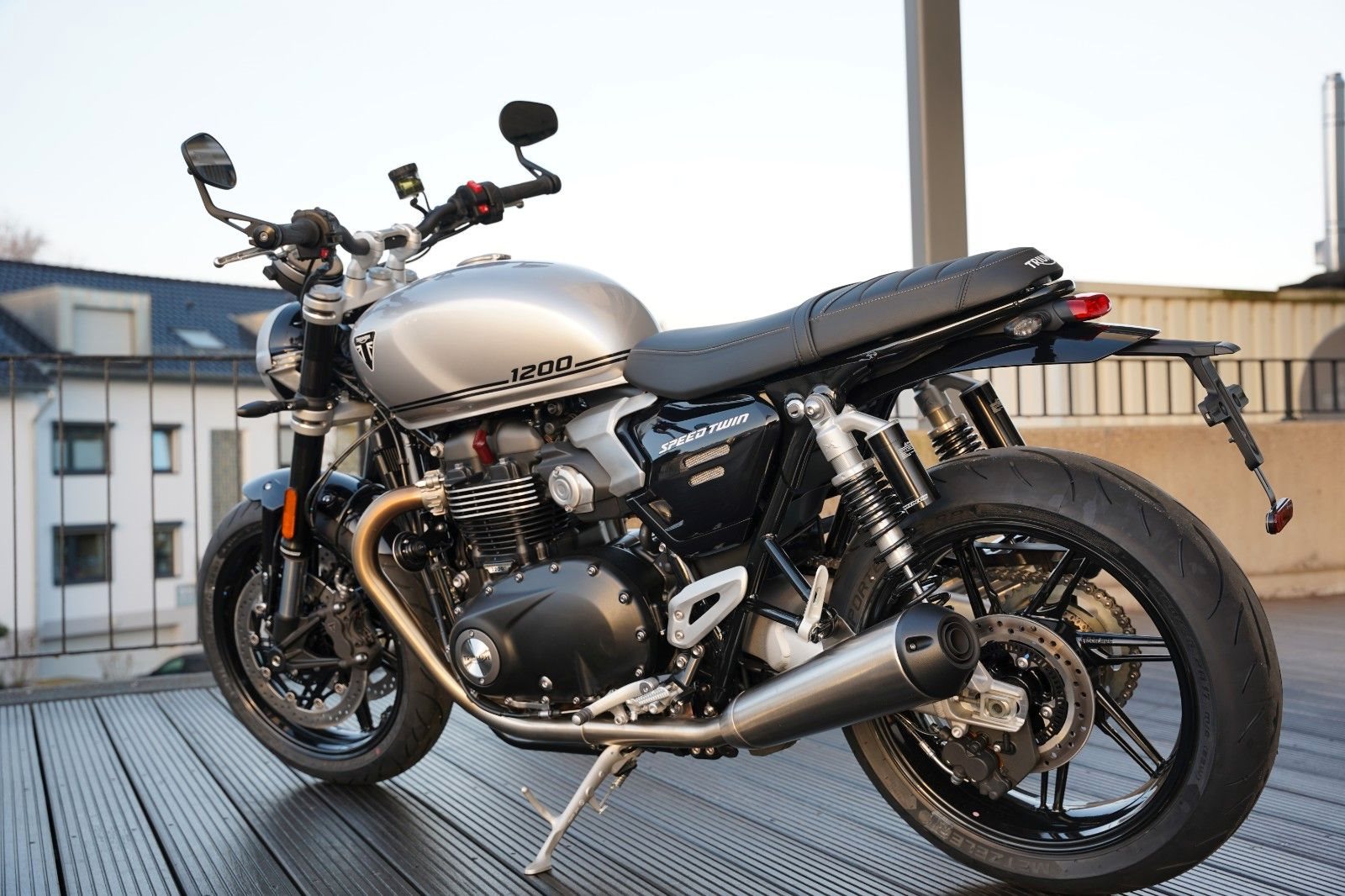 Mit den neuen Speed Twin 1200-Modellen bietet Triumph zwei außergewöhnliche Maschinen, die Retro-Optik und moderne Technik ansprechend kombinieren. Der potente 1200er Paralleltwin trifft nun auf State-of-the-Art Elektronik.und verwöhnt mit einem herrlichen Sound. Die Standard-Speed Twin überzeugt mit einer entspannten Ergonomie. Der breite, höher positionierte Lenker und die niedrigeren Fußrasten sorgen für eine aufrechte Sitzhaltung. Auf der Standardvariante sind alltagstaugliche Fahrwerks- und Bremskomponenten verbaut, die in den meisten Situationen vollkommen ausreichen.