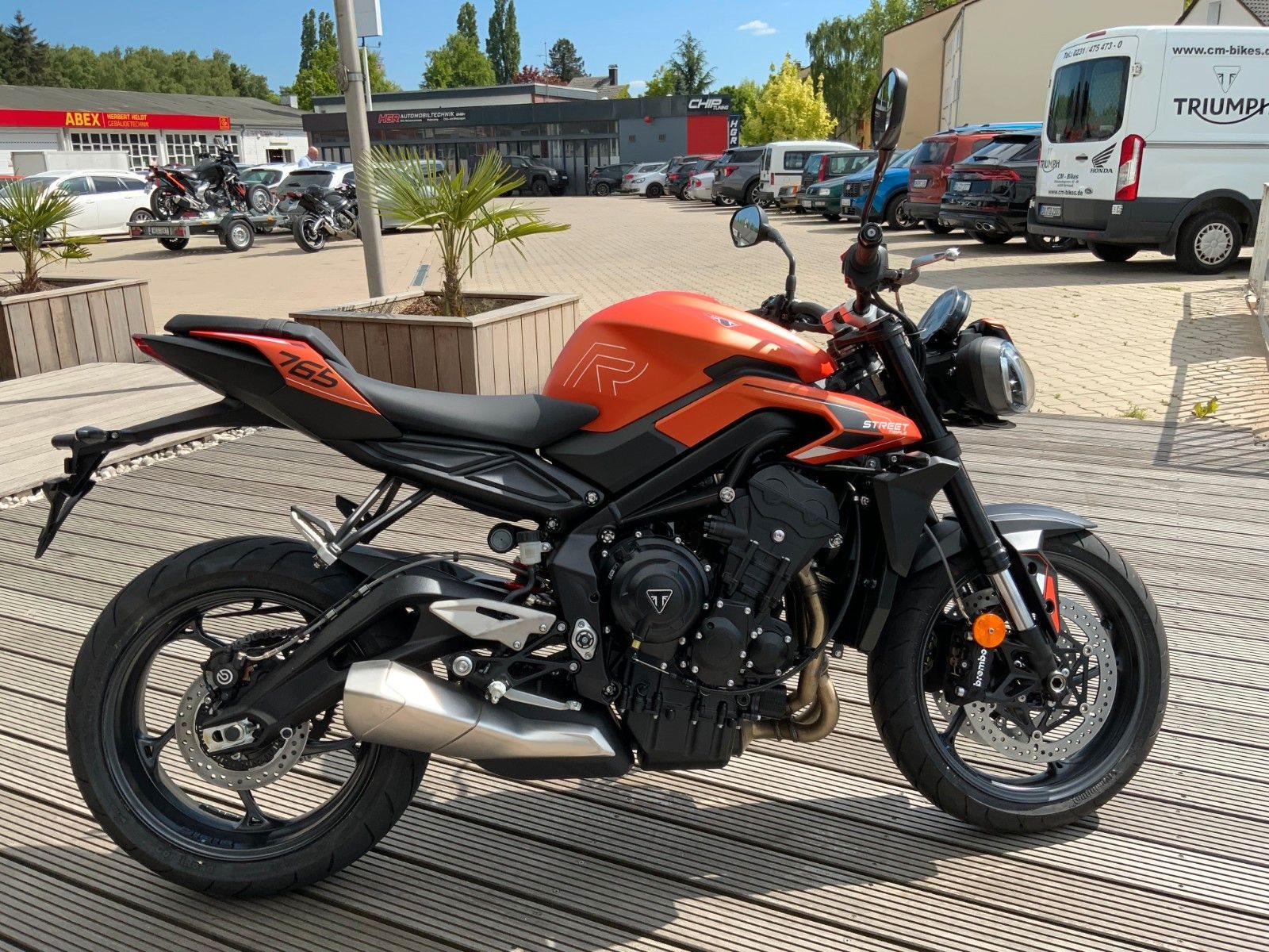 Auf ca. 1.500 qm Ausstellungsraum mit Fachwerkstatt bieten wir ihnen die komplette Modellpalette von Triumph und Honda Neufahrzeugen, sowie immer eine Auswahl an gebrauchten Fahrzeugen aller Marken.