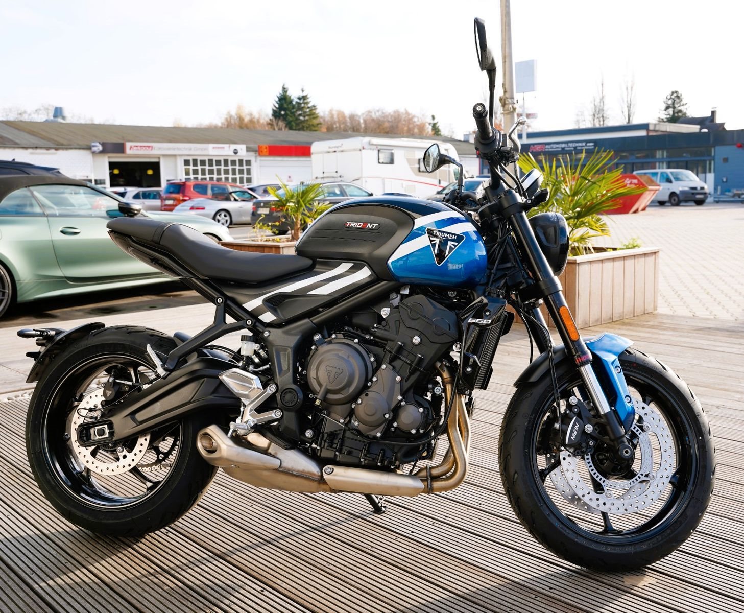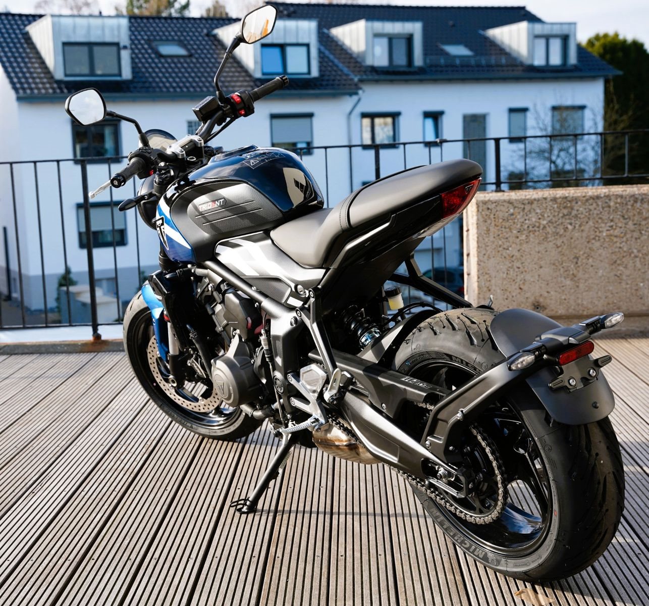 Der variable Dreizylinder vereint sattes Drehmoment im unteren, kraftvollen Durchzug im mittleren Drehzahlbereich und aufregende Top-Leistung bei hohen Drehzahlen. Hinzu kommen die allerneuesten elektronischen Assistenzsysteme, mit deren Hilfe die Trident ein unvergleichliches Maß an Kontrolle bietet und dabei stets ihren Spaßfaktor behält.