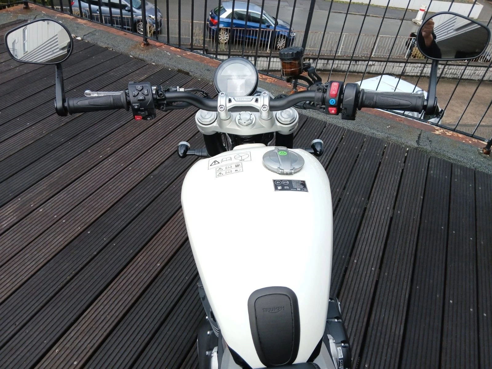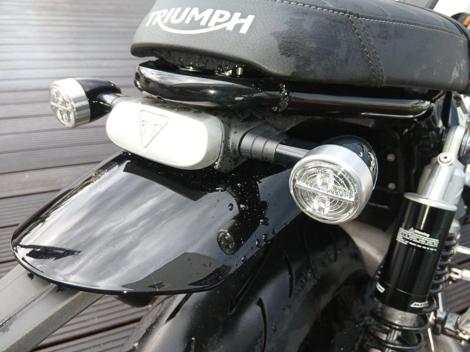 Das Motorrad ist bereits mit einem Alu-Unterfahrschutz und den LED- Blinkern mit Bremslicht und Rücklichtfunktion ausgerüstet. Beides natürluch aus dem umfangreichen Triumph Zubehör Sortiment.