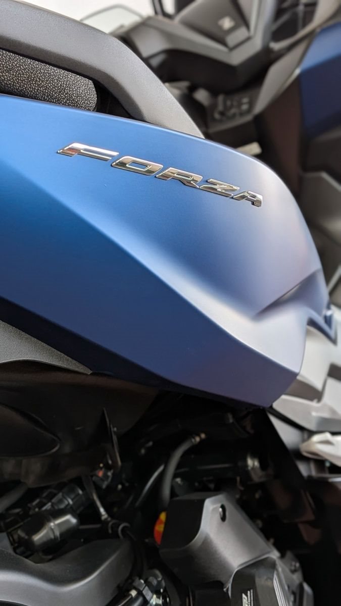 Zum Verkauf steht ein fabrikneuer Honda Forza NSS125 (Modell JK02) in der edlen Farbe Mat Pearl Pacific Blue. Dieser Premium-Roller kombiniert modernste Technik, erstklassigen Komfort und sportliches Design - perfekt für anspruchsvolle Fahrer im Alltag und auf längeren Strecken.